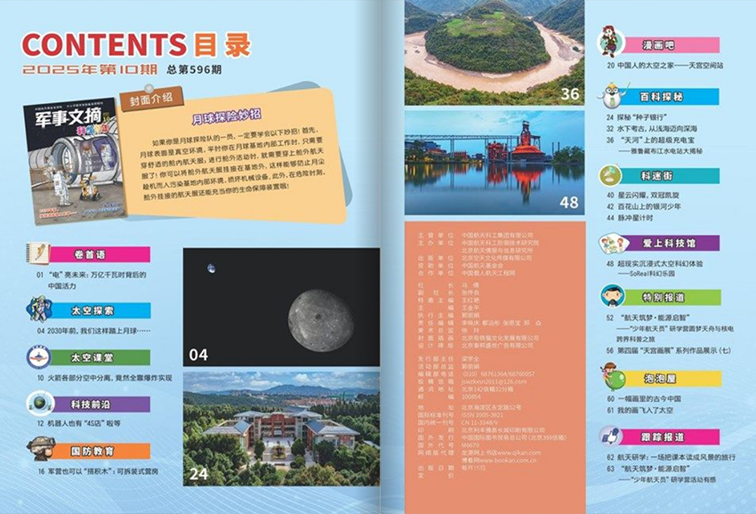 《軍事文摘·科學(xué)少年》雜志匯聚了國內(nèi)眾多知名航天、科普專家,他們憑借深厚的學(xué)識和豐富的經(jīng)驗,為雜志的內(nèi)容質(zhì)量保駕護(hù)航。這些專家們長期深耕于航天、軍事等領(lǐng)域,對前沿科技動態(tài)有著敏銳的洞察力,能夠?qū)?fù)雜深奧的科學(xué)知識轉(zhuǎn)化為通俗易懂、生動有趣的內(nèi)容,讓青少年在輕松閱讀中領(lǐng)略科學(xué)的魅力。 以航天科普為例,雜志深入淺出地介紹了航天器的構(gòu)造、太空探索的歷史與現(xiàn)狀、宇航員的訓(xùn)練與生活等。從神舟飛船的發(fā)射原理到中國空間站的建設(shè)歷程,從火星探測的最新成果到未來星際旅行的暢想,每一個話題都精心策劃,用圖文并茂的形式展現(xiàn)出來。精美的航天器插圖、真實的太空照片,配合詳實的文字解說,讓青少年仿佛置身于浩瀚宇宙之中,感受著太空探索的壯麗與艱辛,激發(fā)他們對航天事業(yè)的熱愛與向往,培養(yǎng)他們的科學(xué)探索精神和民族自豪感。