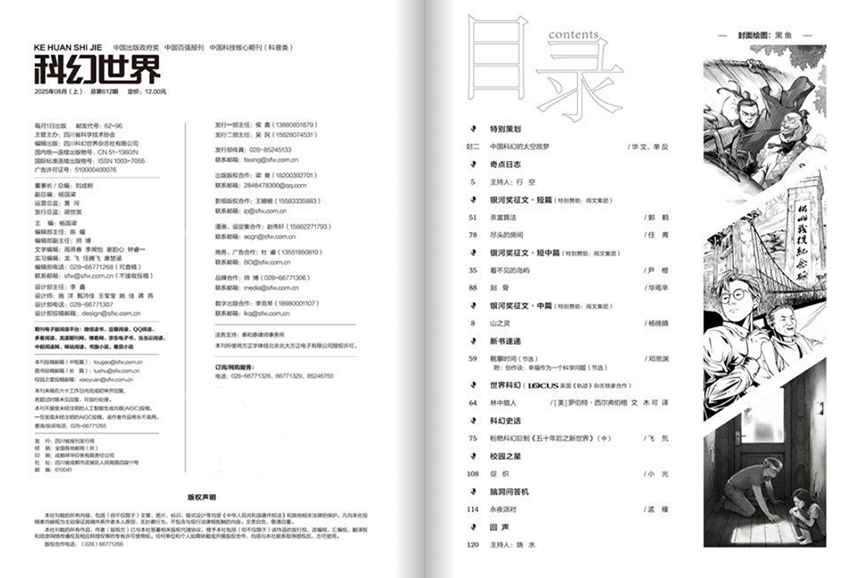 《科幻世界》始終高擎中國(guó)科幻文化的大旗,作為中國(guó)最具權(quán)威性與影響力的科幻類期刊,不僅見(jiàn)證了中國(guó)科幻從邊緣走向主流的全過(guò)程,更以堅(jiān)定的使命擔(dān)當(dāng),為推動(dòng)中國(guó)科幻事業(yè)的發(fā)展、激發(fā)公眾科學(xué)熱情、提升讀者科學(xué)素養(yǎng)作出了不可磨 雜志以刊登原創(chuàng)科幻小說(shuō)為核心,始終堅(jiān)持“倡導(dǎo)創(chuàng)新思維,展示科學(xué)魅力”的辦刊宗旨。它不僅為讀者呈現(xiàn)國(guó)內(nèi)外一流的科幻佳作,還積極追蹤前沿科技動(dòng)態(tài),融合科學(xué)知識(shí)與文學(xué)想象,讓讀者在閱讀中感受科技之奇、宇宙之廣、未來(lái)之夢(mèng)。其內(nèi)容涵蓋硬核科技、太空探索、人工智能、時(shí)間旅行、平行宇宙等經(jīng)典主題,既有劉慈欣《三體》系列的恢弘史詩(shī),也有王晉康、何夕、韓松等名家的思想深邃之作,更有青年作家如陳楸帆、夏笳、江波等人的先鋒實(shí)驗(yàn),構(gòu)成了中國(guó)科幻創(chuàng)作的完整圖譜。