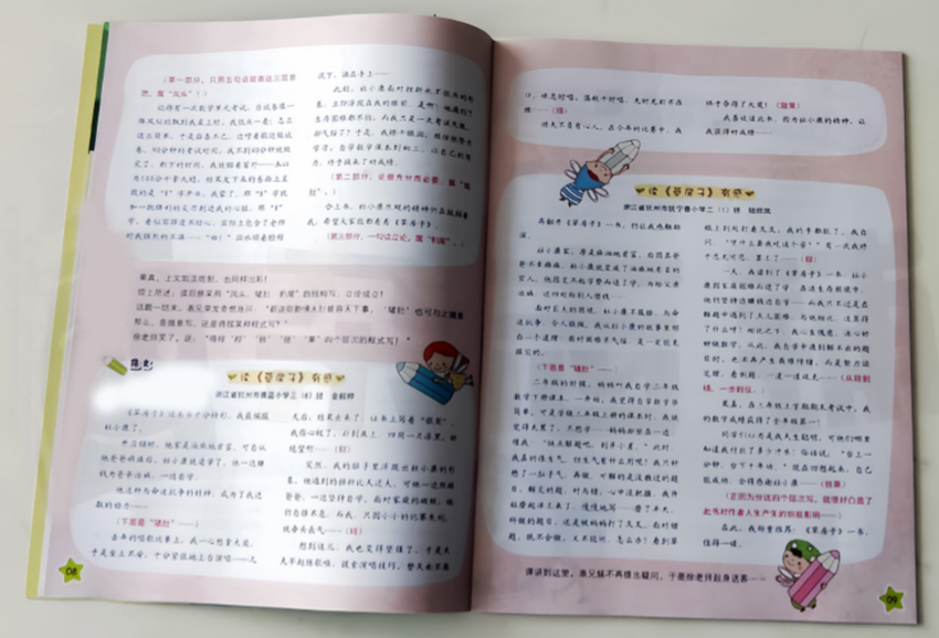 它"更輕松",是因為將寫作從任務(wù)變成了游戲。誰說學(xué)作文一定要正襟危坐?雜志每期設(shè)置"腦洞大開"創(chuàng)意挑戰(zhàn),如"用三種顏色寫一個春天""讓標(biāo)點符號當(dāng)主角""把古詩改寫成偵探故事",這些趣味命題瞬間點燃孩子的表達(dá)欲。雜志還首創(chuàng)"作文劇本殺",將敘事技巧融入角色扮演,孩子在破解案件的過程中不知不覺掌握了懸念設(shè)置、人物塑造和伏筆埋設(shè)。沒有考試壓力,沒有字?jǐn)?shù)壓迫,只有"你的作品上刊了"的驚喜稿費,和來自全國小讀者的點贊留言。這種正向激勵,讓寫作從"要我寫"華麗轉(zhuǎn)身為"我要寫",連最頭疼作文的孩子都會主動翻開筆記本。