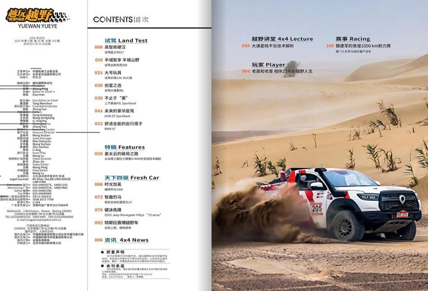 "越野旅行/穿越/探險(xiǎn)"欄目提供詳實(shí)的路線攻略與目的地指南,帶領(lǐng)讀者走進(jìn)大自然;"驛站"板塊則包羅萬象,涵蓋戶外服飾、電子產(chǎn)品、野外裝備等周邊產(chǎn)品推薦,以及閑情逸致的輕松話題。雜志高度重視社會(huì)責(zé)任與環(huán)境友好,在倡導(dǎo)越野樂趣的同時(shí),強(qiáng)調(diào)生態(tài)保育意識(shí),實(shí)現(xiàn)了從"征服自然"到"和諧共生"的理念升級(jí)。