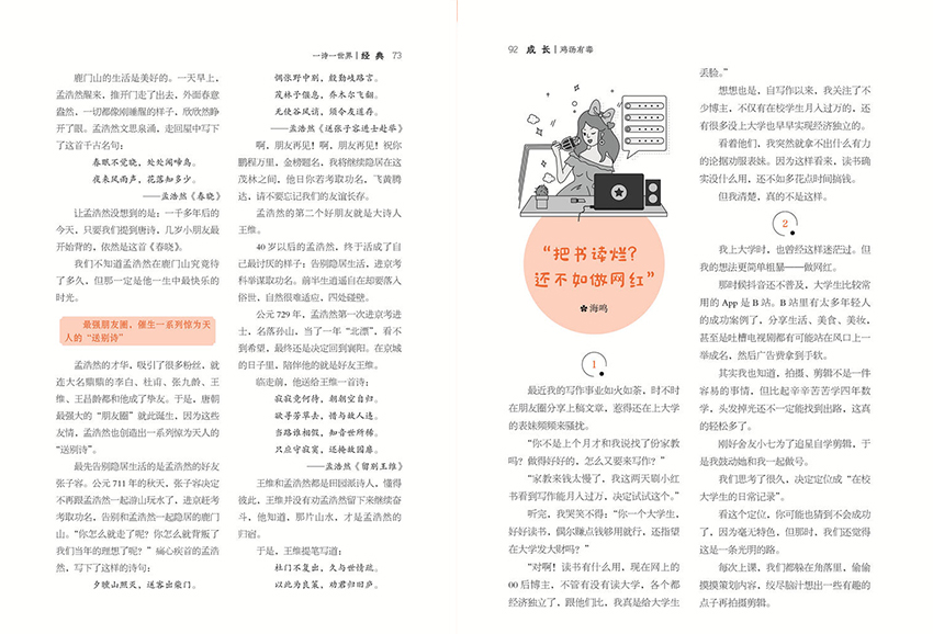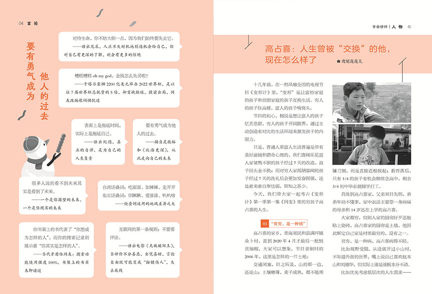 在視覺呈現(xiàn)上,雜志采用時(shí)尚清新的版式設(shè)計(jì),配以富有藝術(shù)感的插畫與攝影圖片,營造出舒適愉悅的閱讀氛圍。大字號(hào)、疏朗排版、色彩搭配和諧,兼顧審美與實(shí)用性,特別適合青少年長時(shí)間閱讀。