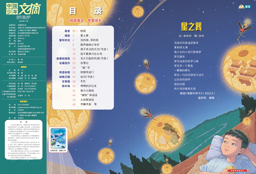 多年來,雜志不僅拓寬了讀者的視野,更貼近少年生活,成為他們心靈成長的重要陪伴。它不僅是一本雜志,更是一個成長平臺,一種溫暖的閱讀體驗,一份獻給少年時代的珍貴禮物。在信息爆炸的時代,雜志以匠心與溫度,守護著少年的好奇心與想象力,引領他們在閱讀中認識世界、發(fā)現(xiàn)自我、走向未來。