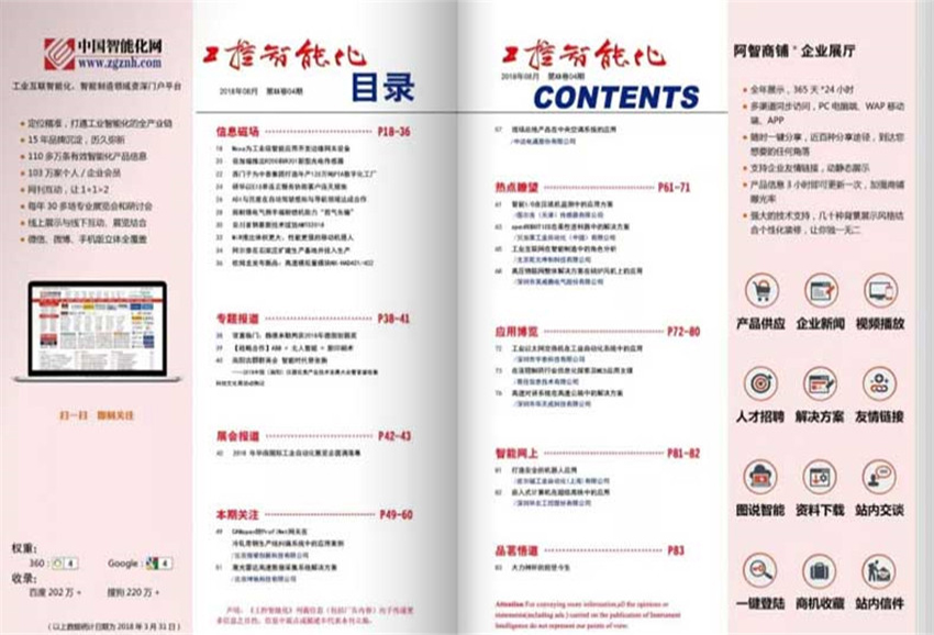 全年一共6期,雙月刊,彩色銅版紙。出版單位:工控智能化雜志社