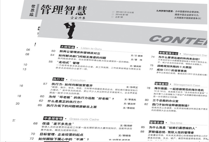 《管理智慧》雜志以“無廣告、純內(nèi)容”為鮮明特色,是國內(nèi)定位高端的經(jīng)管類半月刊。作為系列刊物中聚焦管理實踐的關(guān)鍵成員,它與《經(jīng)營智慧》《人財智慧》《行銷智慧》形成互補(bǔ),專注解決企業(yè)管理中的“模式、效率、執(zhí)行”等核心問題,憑借精到實用的內(nèi)容和古樸典雅的設(shè)計,成為國內(nèi)價格較高卻廣受認(rèn)可的管理類讀物,全年出版24期,每期90頁,每篇文章均配備專家獨(dú)到點(diǎn)評,確保內(nèi)容的權(quán)威性與實操性。