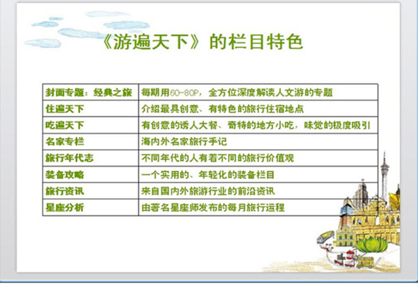 《游遍天下》的讀者以25-45歲、具有較高消費能力的中產(chǎn)階級為主,涵蓋企業(yè)高管、文化從業(yè)者及自由職業(yè)者等群體。雜志通過高端選題策劃與精準市場推廣,在旅游產(chǎn)業(yè)鏈中形成廣泛影響力,其內(nèi)容常被高校圖書館收藏,并成為上海、廣東等地旅游從業(yè)者的參考讀物。例如,2014年推出的“德國藝文志”專輯,以萊茵河畔的浪漫主義、法蘭克福的建筑美學(xué)等主題,為讀者提供深度文化旅行指南,引發(fā)市場熱烈反響。