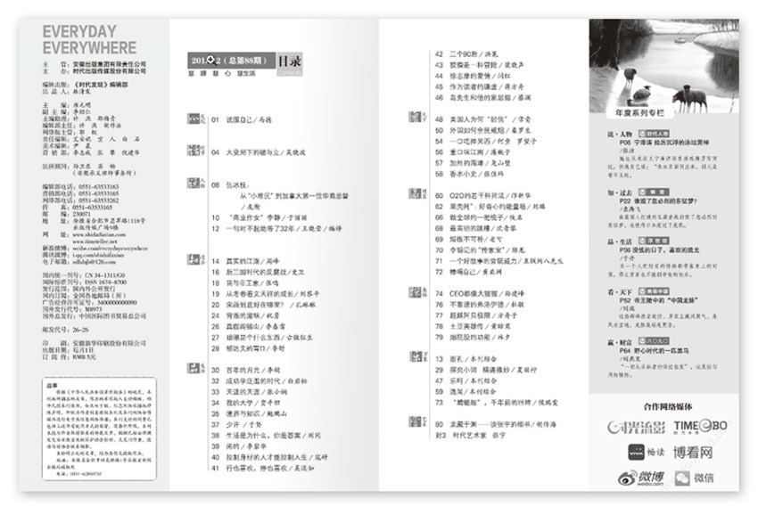 全年一共12期,月刊,彩色銅版紙。出版單位:安徽出版集團(tuán)