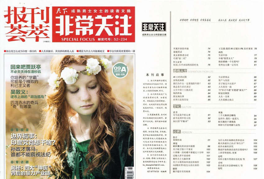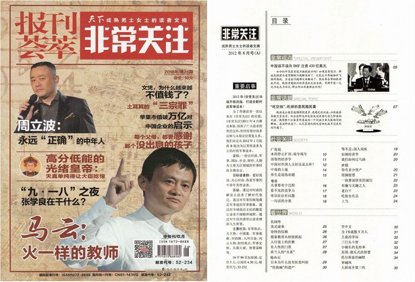 全年一共12期,月刊,單期112頁(yè),彩色銅版紙。出版單位:報(bào)刊薈萃.非常關(guān)注雜志社