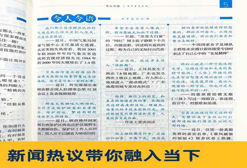 作為中國首本專供高中生閱讀的新聞類綜合讀本,《第一時間志》始終以“貼近學(xué)生、服務(wù)高考”為核心理念,憑借權(quán)威的內(nèi)容架構(gòu)與創(chuàng)新的閱讀體驗(yàn),成為全國80%以上重點(diǎn)中學(xué)指定的課外拓展讀物。該雜志由《散文百家》雜志社出版,延邊教育出版社直屬公司中圖東方文化傳媒有限公司編輯發(fā)行,每月兩期,定價12元/期,全年訂閱價288元,精準(zhǔn)覆蓋高中階段知識積累與思維培養(yǎng)的關(guān)鍵需求。 雜志構(gòu)建了“大視野+小切口”的內(nèi)容矩陣。上半月刊聚焦時事熱點(diǎn),通過“國事速覽”“時政深讀”“財經(jīng)觀察”等欄目,深度解析國內(nèi)外重大事件,如全球氣候變化議題、人工智能倫理爭議等,培養(yǎng)學(xué)生宏觀視野與批判性思維。下半月刊則強(qiáng)化備考指導(dǎo)功能,設(shè)置“高考風(fēng)向標(biāo)”“作文素材庫”“思辨訓(xùn)練場”等板塊,邀請百余位特級教師參與內(nèi)容編寫,提供命題趨勢分析、寫作技法拆解及范文點(diǎn)評。例如,2024年針對新高考“情境化寫作”要求,推出“社會現(xiàn)象多維度思辨”專題,幫助學(xué)生掌握議論文結(jié)構(gòu)搭建與論據(jù)選用技巧。