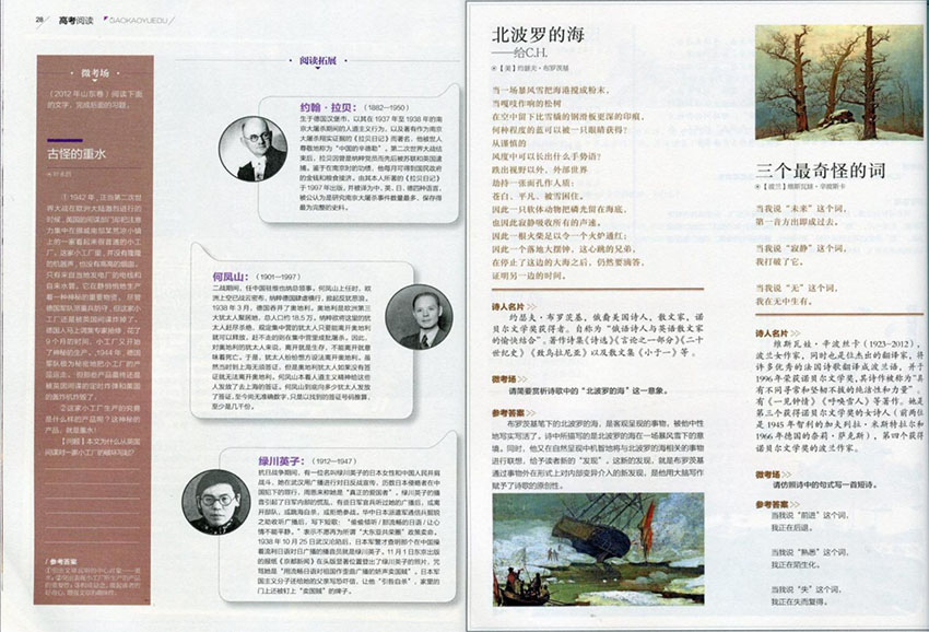 除了應(yīng)試指導(dǎo),雜志更注重考生閱讀素養(yǎng)的長(zhǎng)期培育?!懊医?jīng)典悅讀”欄目精選魯迅、沈從文、史鐵生等文學(xué)名家的經(jīng)典篇目,輔以賞析評(píng)論,引導(dǎo)考生感受文字之美,提升文學(xué)鑒賞能力;“時(shí)文熱點(diǎn)聚焦”則緊扣社會(huì)熱點(diǎn),選取《人民日?qǐng)?bào)》《光明日?qǐng)?bào)》等權(quán)威媒體的評(píng)論文章、深度報(bào)道,幫助考生拓寬視野,積累論述類文本閱讀素材,同時(shí)培養(yǎng)辯證思維能力。此外,“古詩(shī)文積累與賞析”板塊通過(guò)“古詩(shī)文原文+白話翻譯+名句解讀+文化常識(shí)”的形式,助力考生攻克古詩(shī)文閱讀難點(diǎn),夯實(shí)傳統(tǒng)文化基礎(chǔ)。