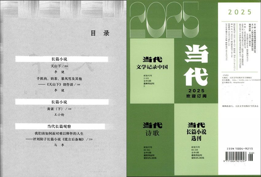 《當代長篇小說選刊雜志》是由人民文學出版社主辦、中國出版?zhèn)髅焦煞萦邢薰局鞴艿碾p月刊文學刊物,創(chuàng)刊于2004年,前身為1979年創(chuàng)刊的《當代》雜志長篇小說增刊,是中國大陸唯一專注于長篇小說選刊的權(quán)威期刊。該雜志以“文學記錄中國”為宗旨,秉持現(xiàn)實主義創(chuàng)作理念,兼顧文學性與社會性,致力于發(fā)掘和展示當代長篇小說的多元風貌。雜志奉行 “文學記錄中國” 的精神,堅持現(xiàn)實主義的辦刊標準,注重作品的當代性、社會性、文學性,兼容百家,尤重現(xiàn)實主義,致力于發(fā)掘和推介優(yōu)秀的長篇小說作品。它第一時間遴選現(xiàn)實主義長篇精品,是文學界、出版界與讀者心目中具有權(quán)威性與指標性的長篇小說傳播平臺。