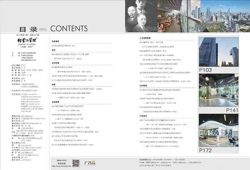 《經(jīng)營與管理》雜志的特色是強調(diào)實踐經(jīng)驗、注重創(chuàng)新思維、倡導國際化視野、堅持科學性、追求高質(zhì)量。雜志的核心內(nèi)容包括“特邀人物”、“管理專題”、“熱點追蹤”、“案例分析”、“創(chuàng)新管理”等多個板塊,每期刊登高水平、高質(zhì)量的研究論文和學術(shù)研究成果,介紹最新的科技動態(tài)和行業(yè)發(fā)展趨勢,成為國內(nèi)外管理領域的權(quán)威和標桿。
