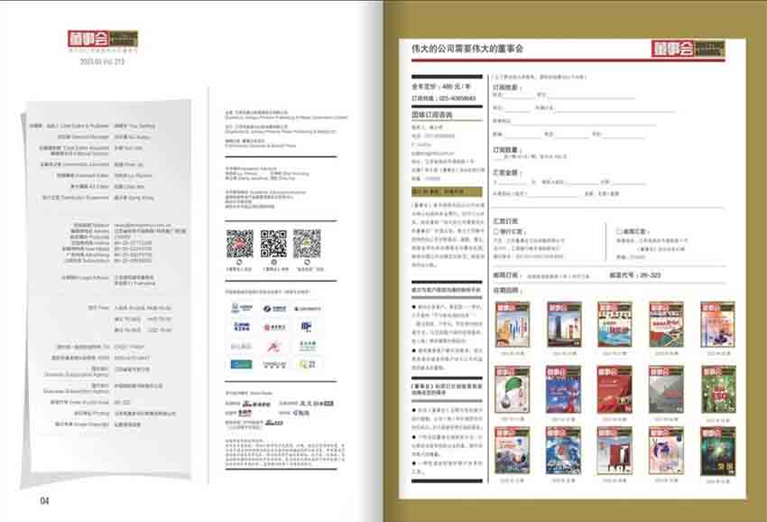 《董事會(huì)》雜志,是中國(guó)惟一一本以公司治理為核心內(nèi)容的專(zhuān)業(yè)期刊。雜志致力于中國(guó)公司基業(yè)常青,以商業(yè)頂層的政治和智慧,洞察全球治理潮流、透視中國(guó)政經(jīng)大勢(shì)、解讀公司高層政治、提供本土原生案例;以全球視野審視中國(guó)公司治理改革和董事會(huì)建設(shè)問(wèn)題,為企業(yè)高層戰(zhàn)略決策、管治體制機(jī)制創(chuàng)新、增進(jìn)核心競(jìng)爭(zhēng)力,提供最新理念和有益借鑒。在追求"三性一化",即通俗性、案例性、學(xué)術(shù)性及本土化的道路上奮勇前行。