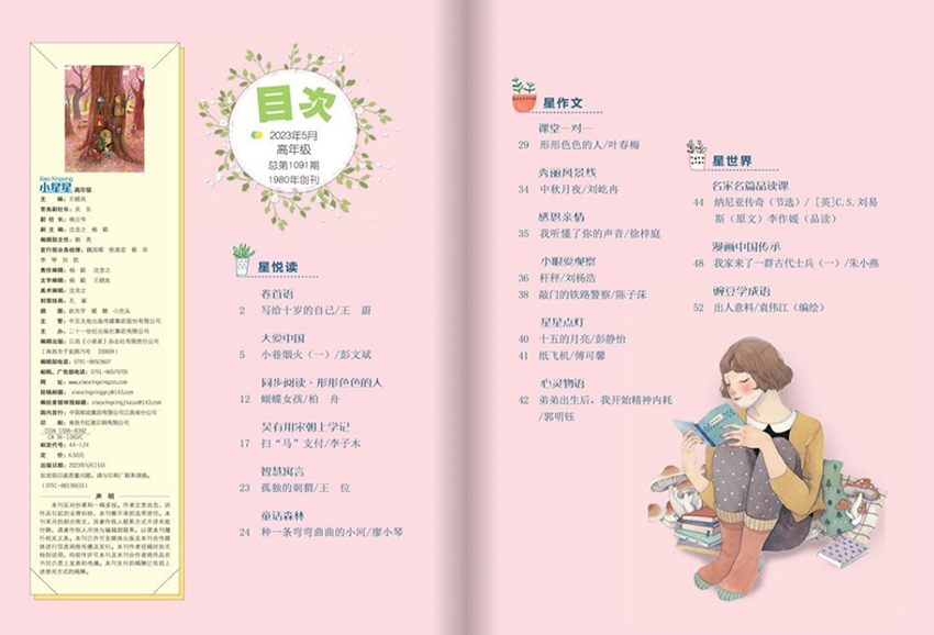 《小星星》(月刊)經(jīng)過(guò)多年的不懈努力,流行度高,大眾辨識(shí)度廣,創(chuàng)刊于1980年,開拓了視野,帶給讀者富有生活特色的內(nèi)容。《小星星》內(nèi)容多元,精彩紛呈,既有針對(duì)剛上小學(xué)一年級(jí)孩子的微童話,又有適應(yīng)課堂改革需求、鼓勵(lì)孩子參與角色扮演的童話劇本?!缎⌒切恰芬粋€(gè)個(gè)想象飛揚(yáng)、充滿詩(shī)意、幽默風(fēng)趣的充滿文學(xué)味兒的童話,像兒童心靈的指路明燈,引領(lǐng)其在愉悅的閱讀體驗(yàn)中充分放飛想象力,樹立正確的價(jià)值觀,培育豐富的內(nèi)心世界。