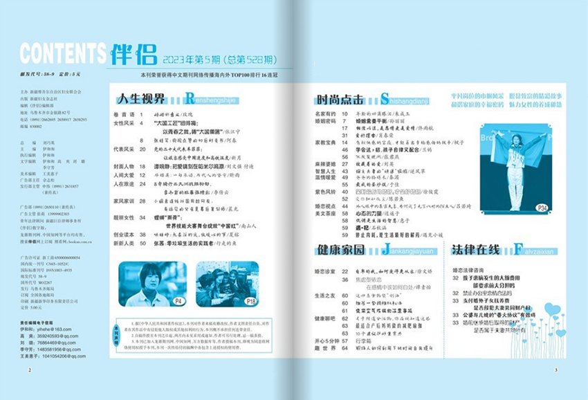 雜志內(nèi)容主要為專家談?wù)摵驮趯嵺`中積累經(jīng)驗的人士分享自己經(jīng)歷,為讀者提供各種婚戀、愛情、家庭、親子、情感等方面的建議和信息,并通過各種實例幫助讀者們更好地理解和解決日常生活中遇到的各種問題。此外,該雜志還設(shè)有一些特別欄目,如健康專題、美食飲食等,幫助讀者更好地關(guān)注自己的健康和營養(yǎng)問題。