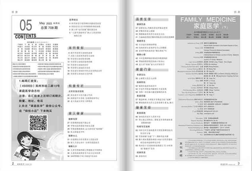 《家庭醫(yī)學(xué)》雜志的宗旨是為廣大讀者和醫(yī)護(hù)人員提供準(zhǔn)確、及時(shí)、高效、實(shí)用的醫(yī)療信息和健康知識(shí)。以醫(yī)療科技創(chuàng)新和醫(yī)學(xué)知識(shí)傳播為手段,推動(dòng)健康管理與預(yù)防方案的實(shí)踐和進(jìn)步,幫助人們保持和提高自身及家庭的健康水平。同時(shí),該雜志也重視醫(yī)學(xué)學(xué)科的縱向擴(kuò)展和橫向融合,深度挖掘醫(yī)療技術(shù)和社會(huì)需求的結(jié)合點(diǎn),促進(jìn)科技、醫(yī)學(xué)、人文等多領(lǐng)域知識(shí)的交流和應(yīng)用,推進(jìn)“全科醫(yī)生、家庭醫(yī)生、社區(qū)醫(yī)生”等價(jià)值觀的普及和實(shí)踐。