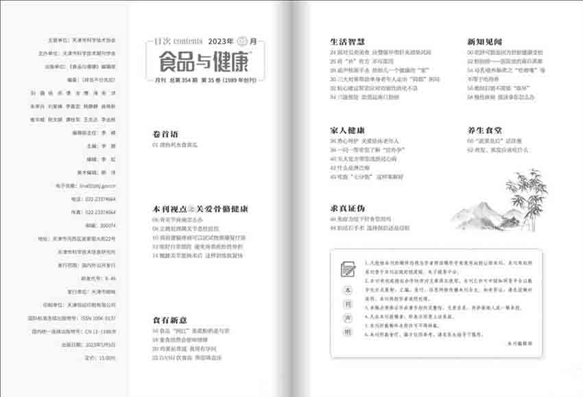 《食品與健康》雜志是一本倡導(dǎo)人們提高生活質(zhì)量的科普期刊。超前聚集之大衛(wèi)生觀,科學(xué)健康的權(quán)威視角,飲食文化的品位享受,家庭必備之良師益友。雜志的宗旨是:從食品的話題入手,以大衛(wèi)生觀的角度來宣傳,食品與健康的關(guān)系,指導(dǎo)人們提高生活質(zhì)量與生存質(zhì)量的科普期刊,追求文化品位視角獨特是本刊的特色。