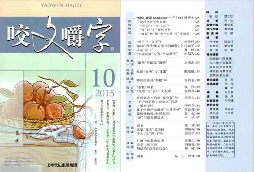 全年一共12期,月刊,單期56頁,單色銅版紙。出版單位:《咬文嚼字》編輯部