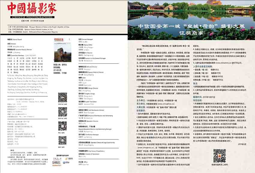 《中國攝影家》主要欄目:攝影器材、攝影藝術(shù)、國際交流、廣告攝影、專題討論、市場信息、專家論壇、讀者園地。