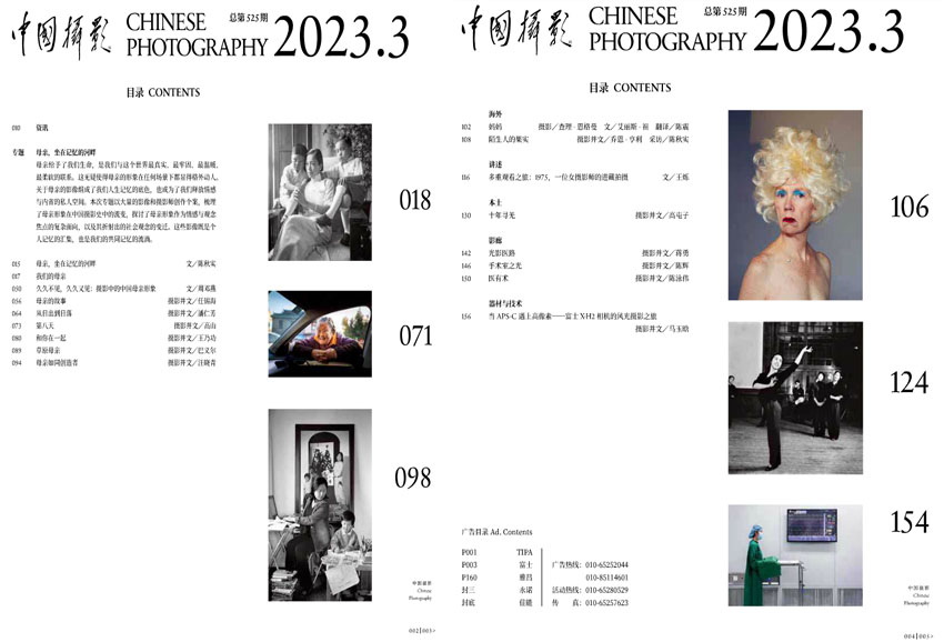 《中國攝影》主要欄目:攝影論壇、名家名作、域外傳影、報(bào)道攝影、攝影旅游、技術(shù)檔案、專業(yè)器材等。